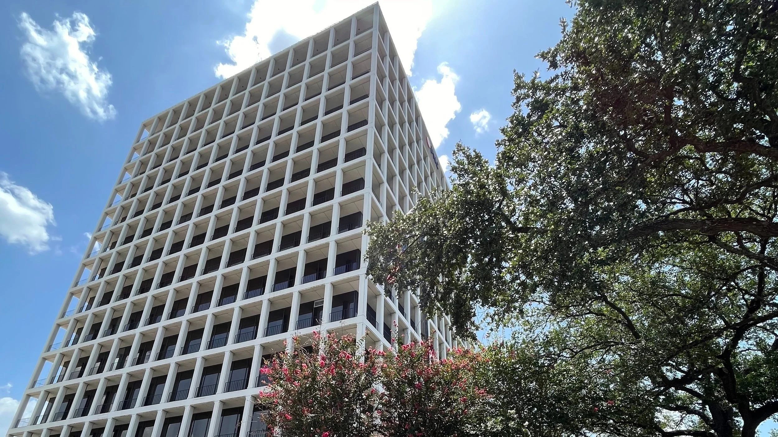 Perched at the intersection of San Felipe and Kirby, the building boasts protected views of the Houston Galleria and the lush landscape of River Oaks.