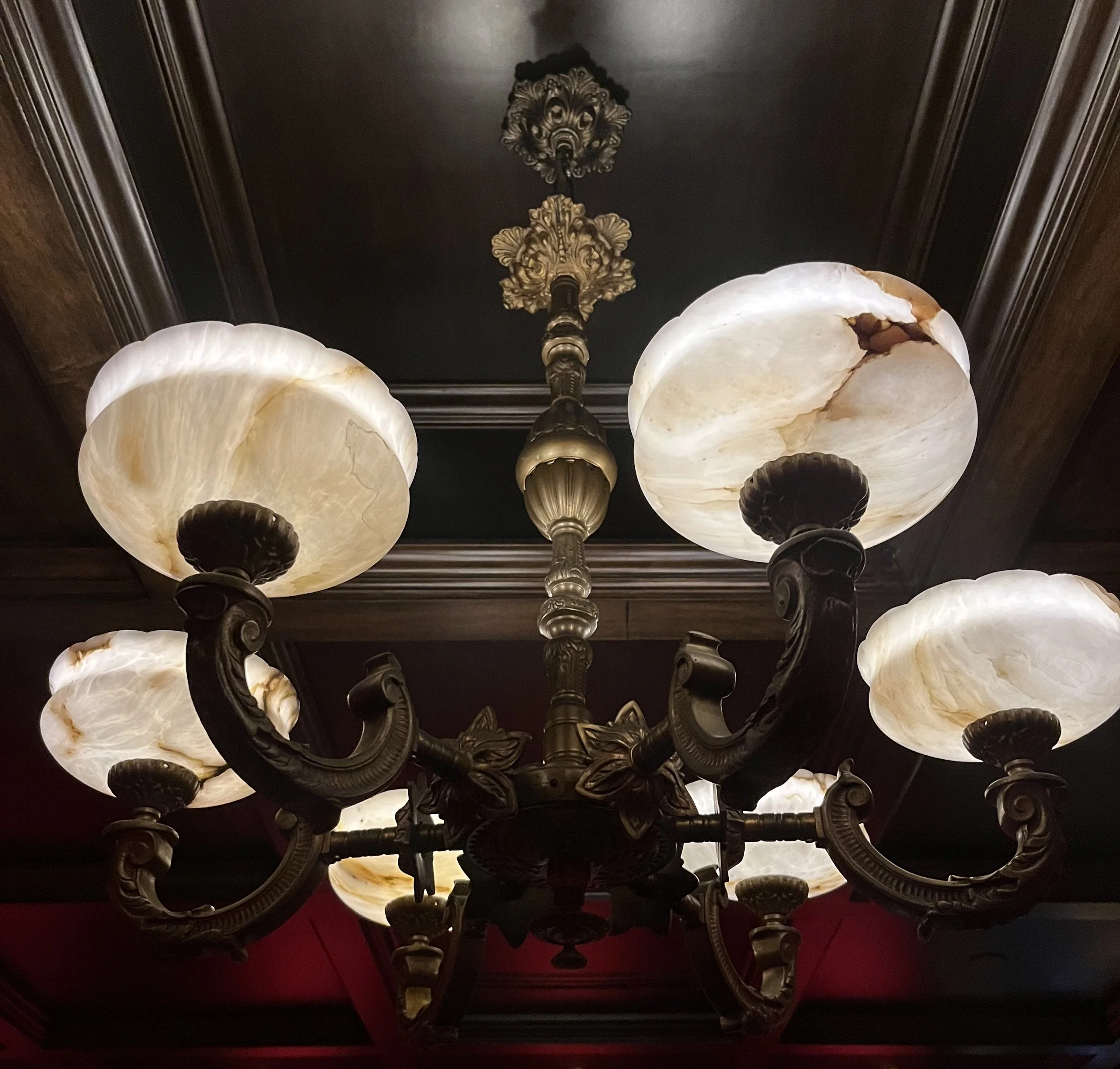 Stunning Antique Chandelier with Alabaster Shades
