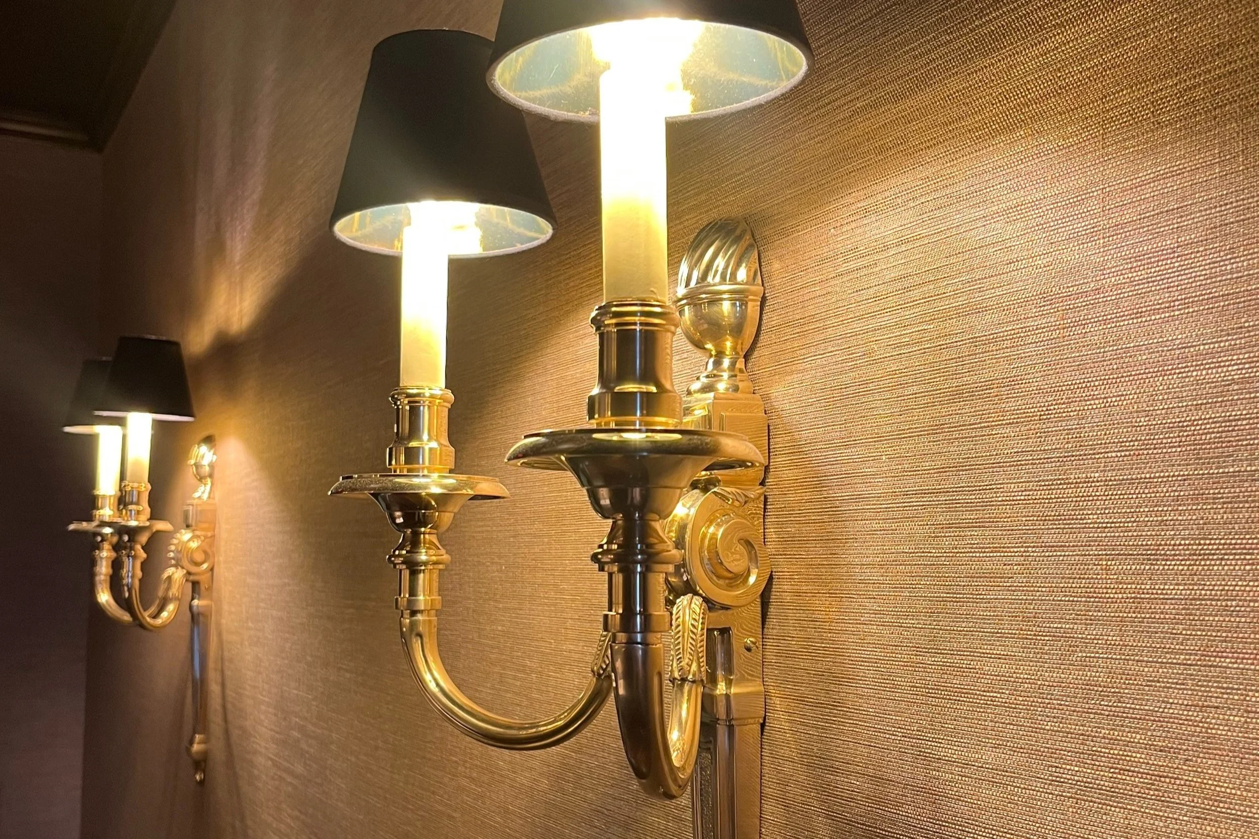 Luxe Dutch Linen Wallpaper & English Solid Brass Sconces